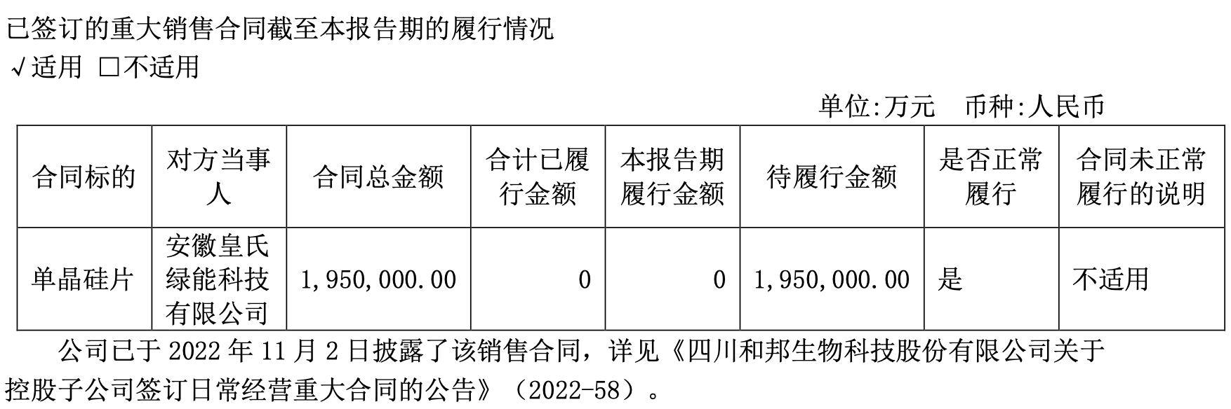 值得一提的是,2022年11月2日公司曾公告,公司控股子公司阜兴科技与皇氏绿能签署长供合作协议,阜兴科技向后者销售太阳能单晶硅片,总销售量不低于25亿片单晶硅片,预计销售金额总计约195亿元人民币(含税)。合同履行期限为2023年5月1日至2027年12月31日。其中:2023年采购量不低于3亿片,2024-2027年采购量每年不低于5.5亿片。