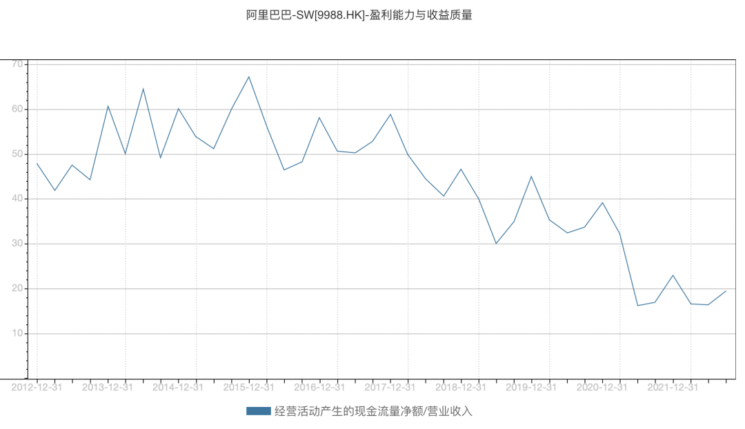 另一个不太妙的迹象是,云业务的惨淡。云业务此前被视为阿里的第二曲线,然而自从大家都知道的某海外大客户开始与阿里云分道扬镳,云业务就进入了水逆期,增长从跌破30%水平线,最新季度增长率更是跌破双位数。阿里云与互联网行业的低迷同呼吸共命运了。