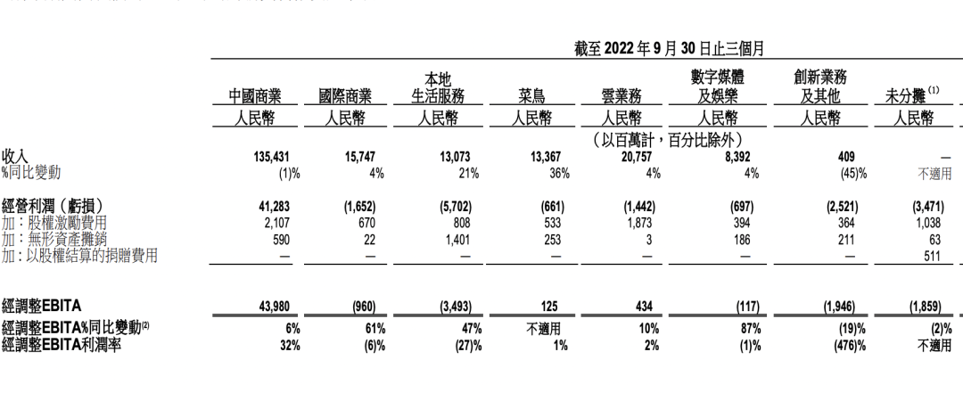 国际商业亏损率从16%收缩到6%,菜鸟利润率转正。
