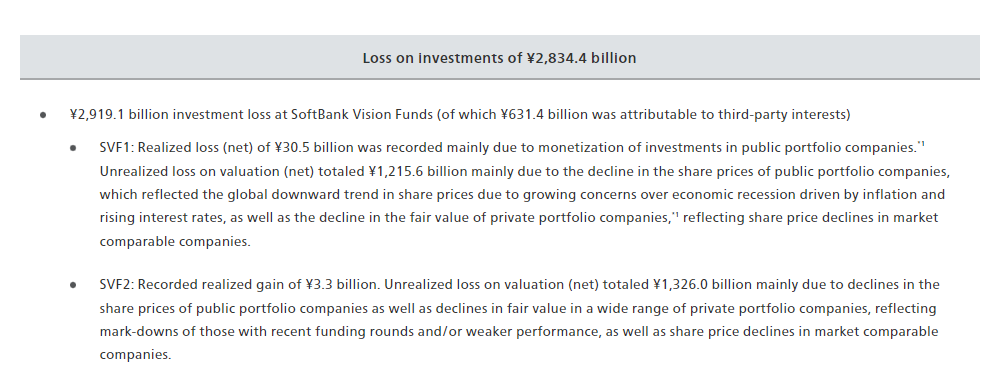 仅在本财季(4-6月),愿景基金就蒸发了大约231亿美元,其中一期和二期大约各占一半。相比上季度的262亿美元净亏,这一季度只能说稍微好了一丁点。