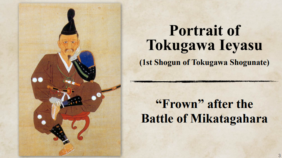 但当时家康并没有掩饰尴尬,而是干脆找人把自己当时的窘样画下来,放在了卧室里,时刻查看和铭记鲁莽的教训,也就留下了这幅名画《颦像》。