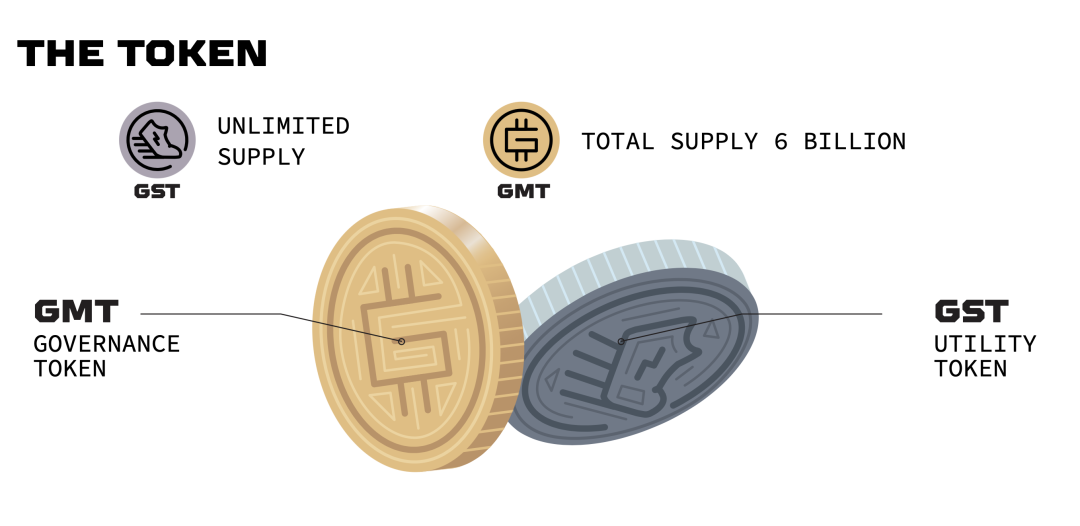 STEPN 的双代币,即游戏代币 GST 与治理代币 GMT。图片来源 | STEPN 官网