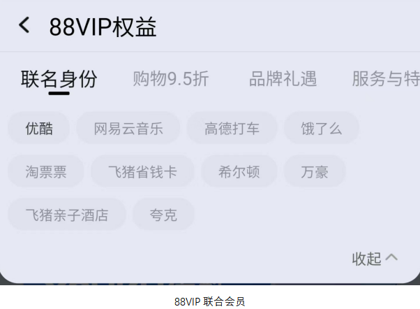此外,现在平台之间流行联合捆绑促销,也让非官方的租售活动变得更加频繁。如天猫88VIP会员,权益包括优酷视频、网易云音乐、饿了么等多个会员,用户将之分拆卖出即可变现。