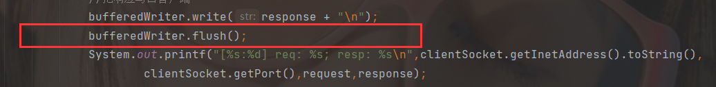 System.out.printf("[%s:%d] req: %s; resp: %s\n",clientSocket.getInetAddress().toString(),