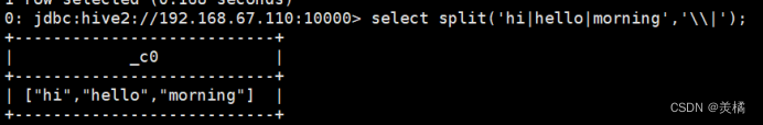 例:select split('hi|hello|morning','\|')