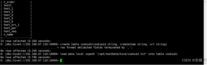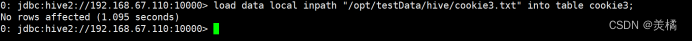 0: jdbc:hive2://192.168.67.110:10000> load data local inpath "/opt/testData/hive/cookie3.txt" into table cookie3;