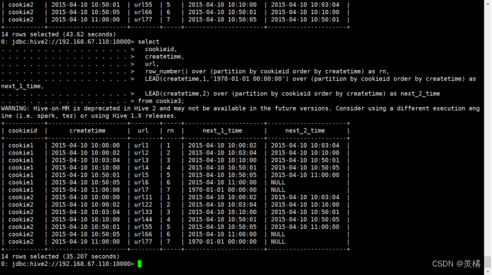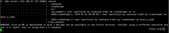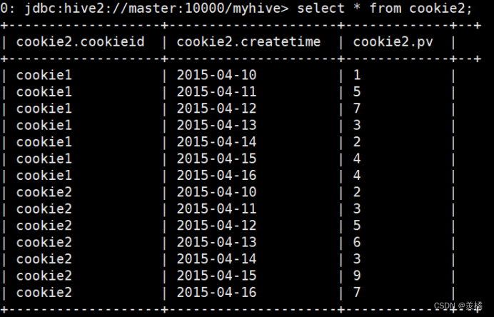 0: jdbc:hive2://192.168.67.110:10000> select * from cookie3;