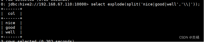 代码:select explode(split("nice|good|well","\|"));