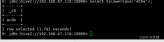 代码:create function tolowercase as 'cn.jixiang.udf.ToLower';