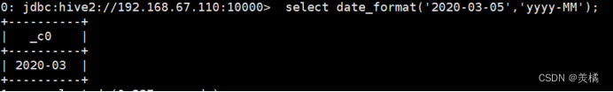 代码:select date_format('2020-03-05','yyyy-MM');