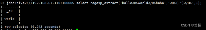 例:select regexp_extract('helloworldhaha','(.*)',1)