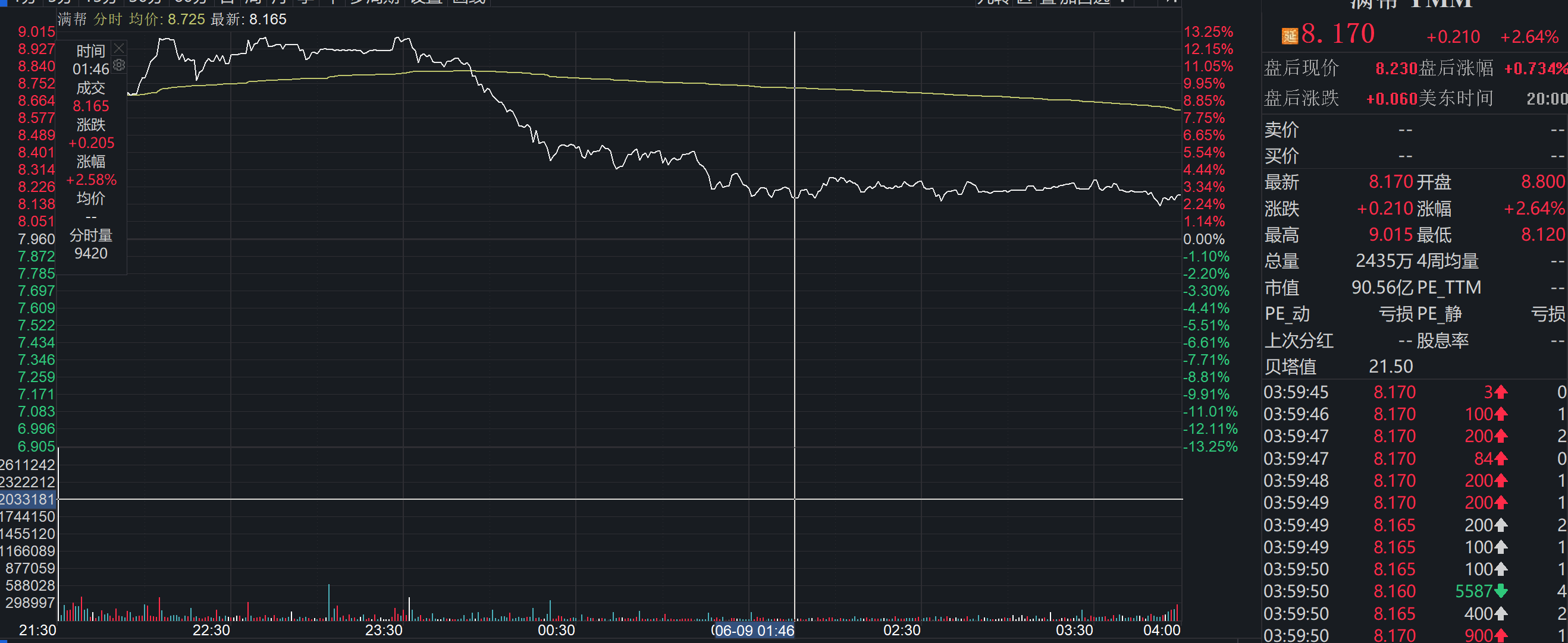 受财报影响,满帮股价收盘价8.17美元/股,涨幅达2.64%。