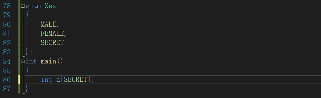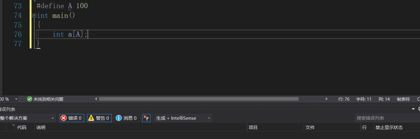int a[100]; //其中的100也是常量,此处需注意,[]中的数字必须是常量,后面我们会用到这个