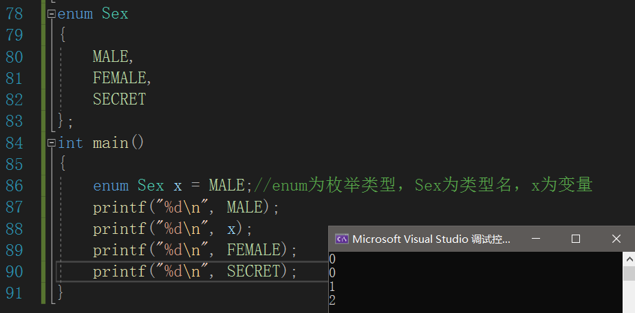 从上面可以看出,枚举类型确实是常量,但需要注意两点,第一点,枚举类型的数据值一般是大写,如图中的MALE,FEMALE,SECRET,虽然说理论上也可以小写,但具体为什么我在此强调,原因同上;第二点,枚举类型定义时,{}内的分隔符是逗号,并且一般会像图中一样放在不用的行内,可以使代码看起来更简洁。