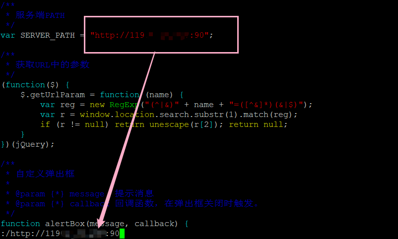 (2)输入 “**/**” + 要修改的内容,回车 (例如:要修改服务器地址和端口号)