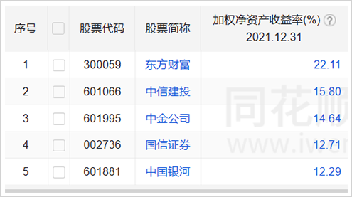 ▲2021年券商行业净资产收益率排名,来源:同花顺