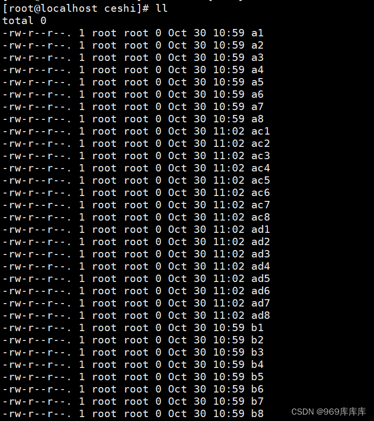 [root@localhost ceshi]# touch ad{1..8}