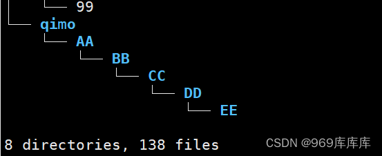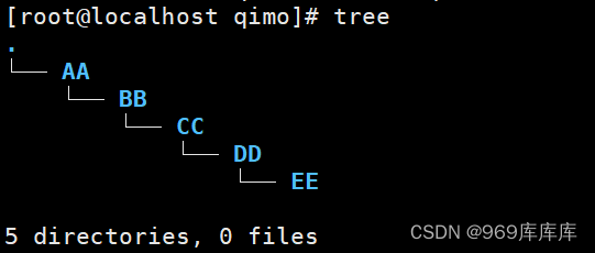 [root@localhost qimo]# mkdir -p AA/BB/CC/DD/EE //创建级联目录