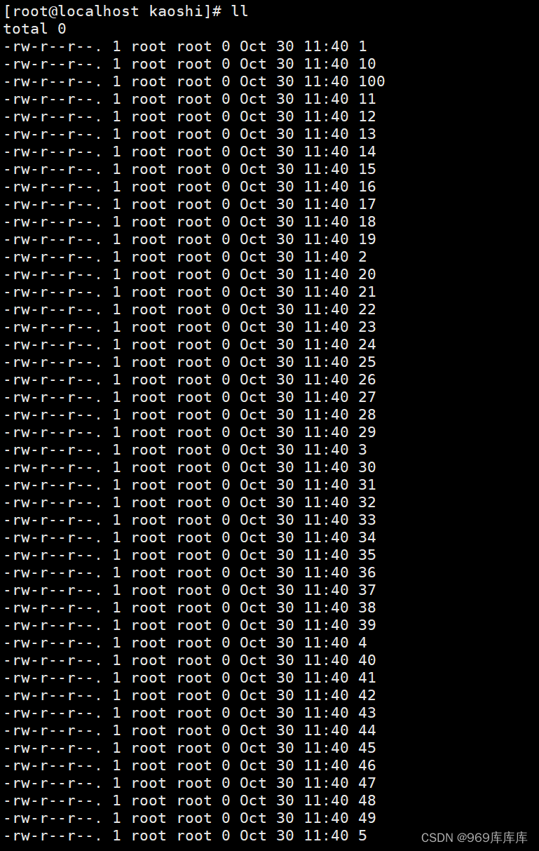 [root@localhost kaoshi]# touch {1..100}