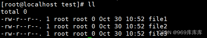 [root@localhost test]# touch file1 file2 file3 //用touch命令创建