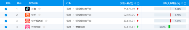 尽管B站多次对Story-Mode竖屏视频的表现予以赞许,但与目前市面上靠竖屏视频起家的两大巨头抖音和快手相比,B站在月活方面还存在不小的差距。