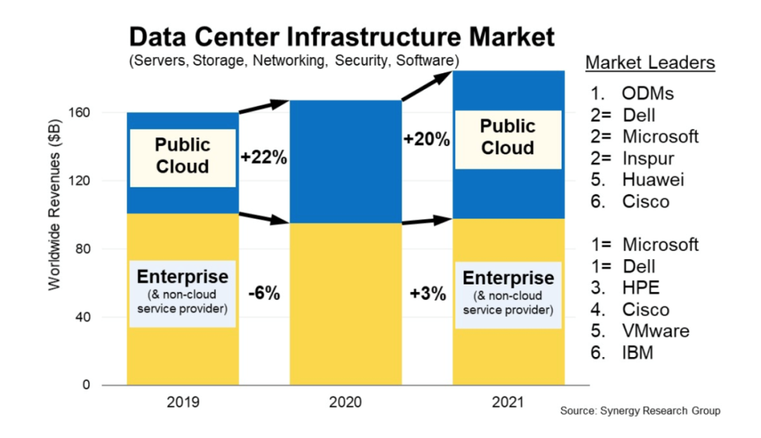 除了这几家之外,市场上其他领先的供应商是 HPE、华为、VMware、联想和IBM。