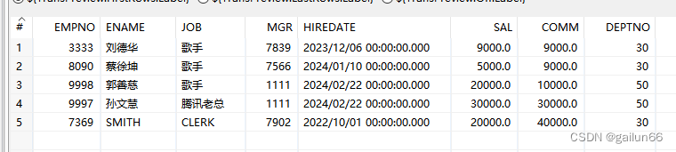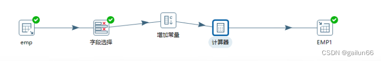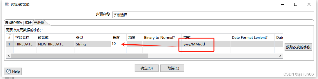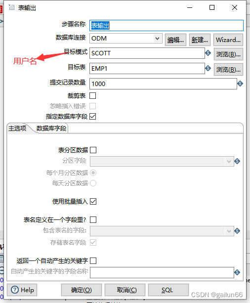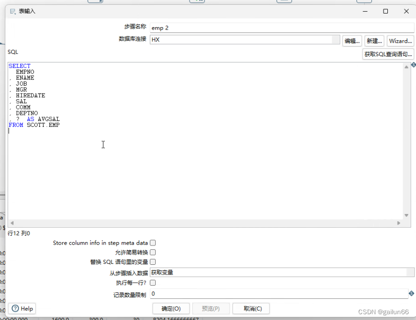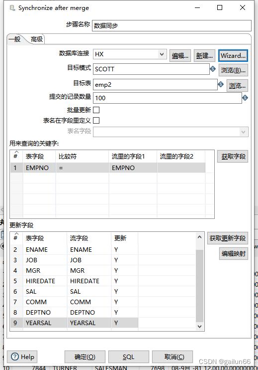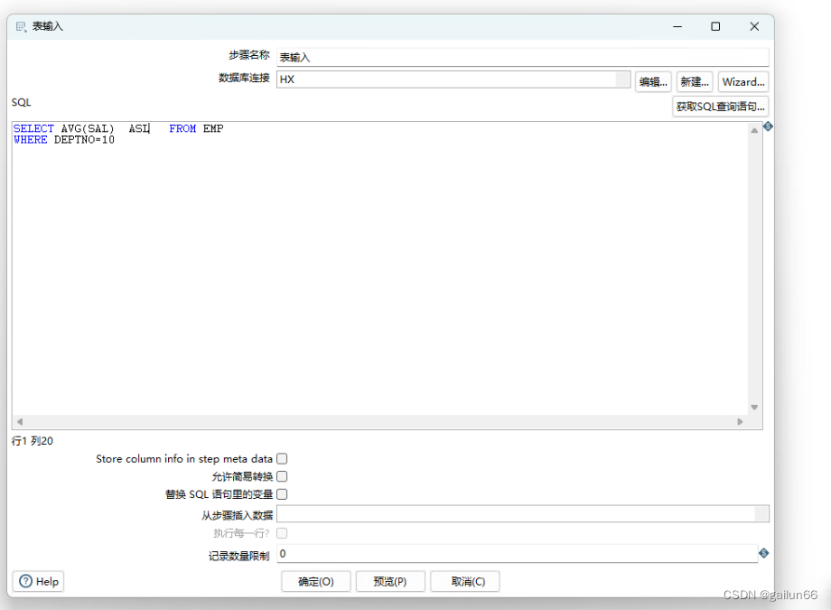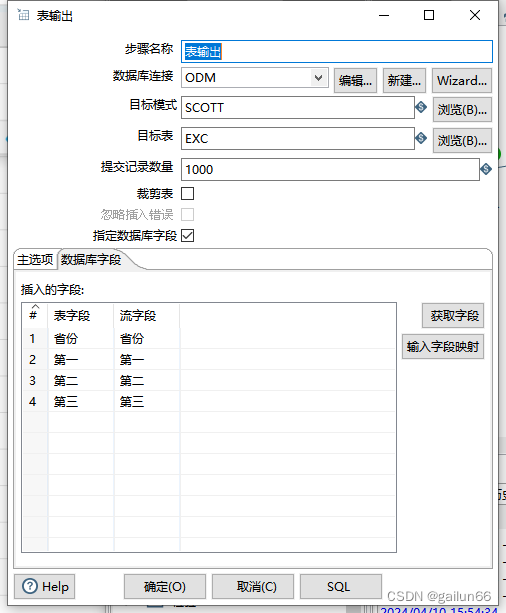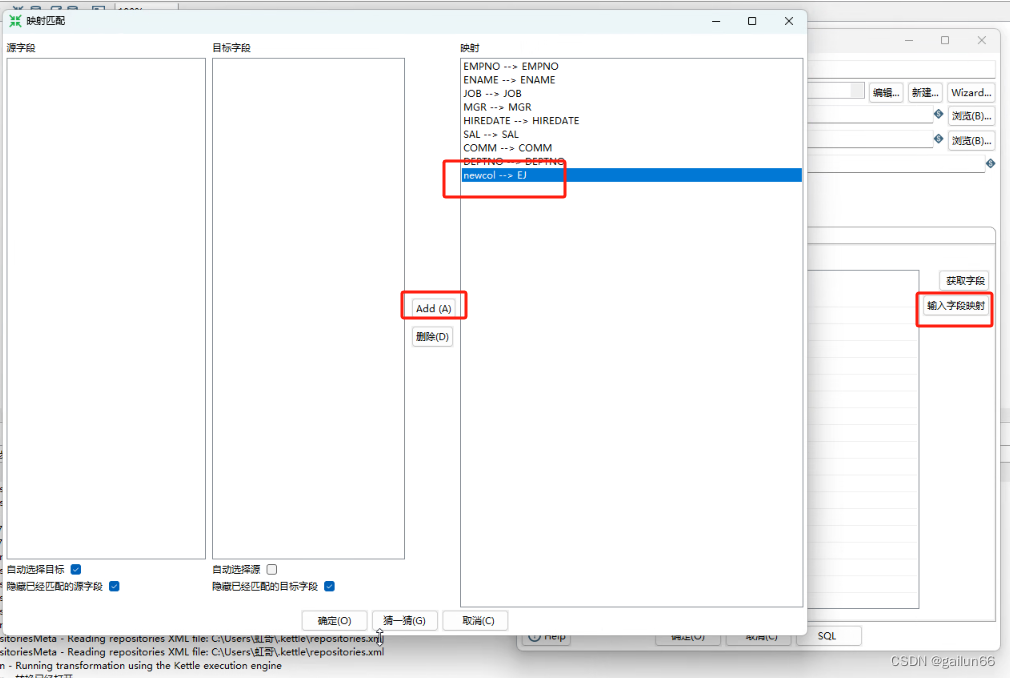 如果不添加字段选择,源数据库的HIREDATE为DATE形式,输出表的HIREDATE为VARCHAR2形式,也可以正常输出,但不是我们想要的结果,所以要添加字段选择
