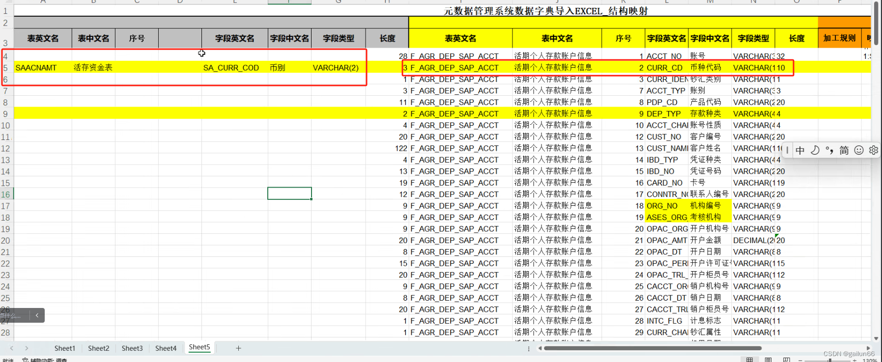 将核心源数据库的字段(数据字典)添加到映射文档中