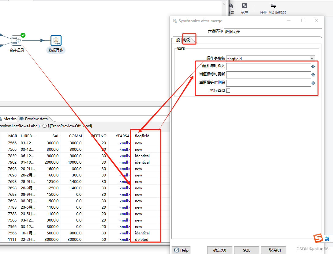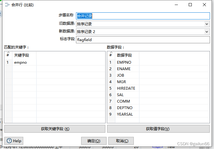 创建两个表输入,先合并数据,旧数据是修改之前的数据,新数据是修改后的数据。