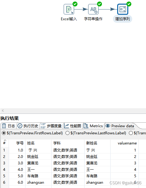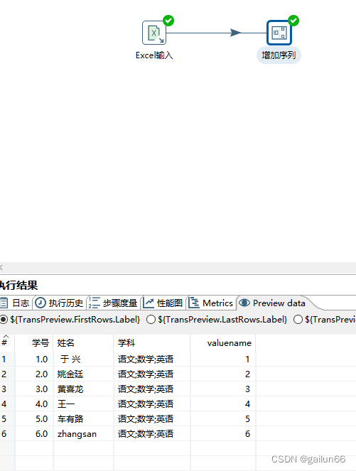 - 目标表有id字段,源表没有对应的数据,需要生成,使用kettle的“增加序列”实现
