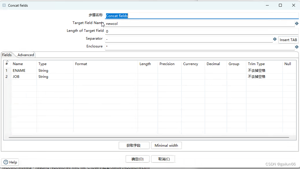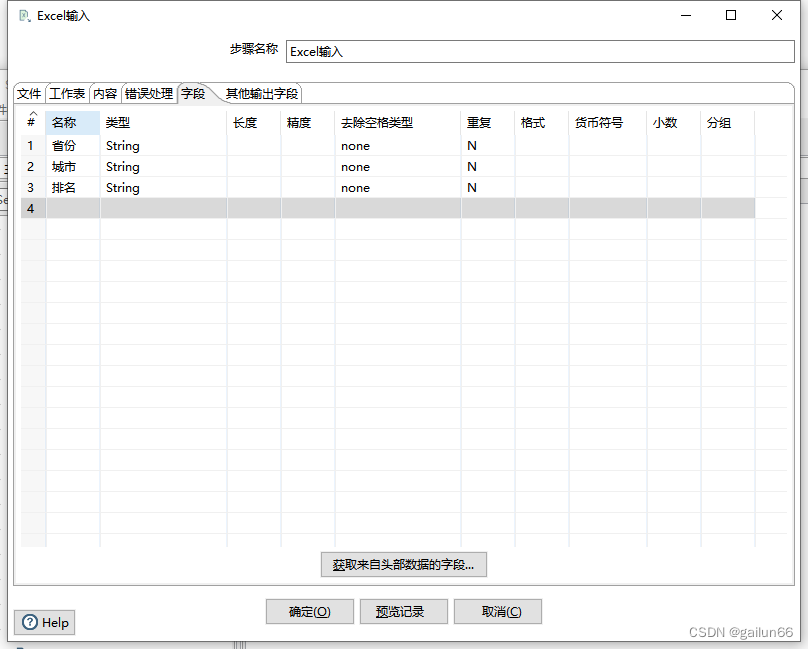 输出流字段:就是经过”字符串剪切后”生成的新字段,如果这里不填的话就是在原字段的基础上进行操作,字段数量不变,如果填入字段的话就会生成一个新的字段。
