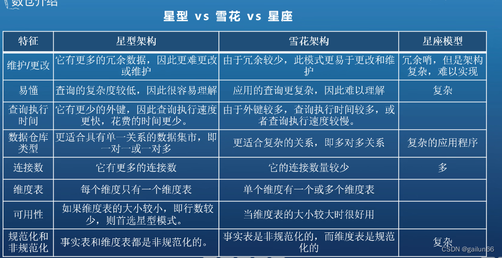 星型模型和雪花模型的对比,可以从以下四个角度来对比。
