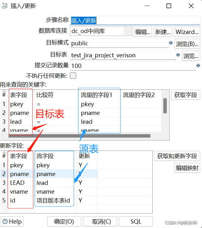 备注:用来查询的关键字,此处只选择主键id,表示这里按照id查询,如果此id存在,则更新数据,若不存在则插入数据。