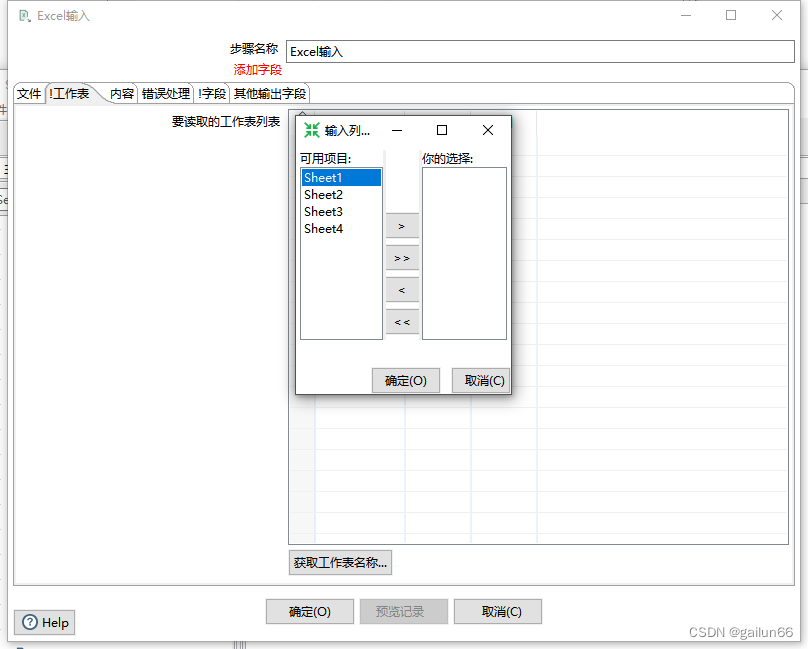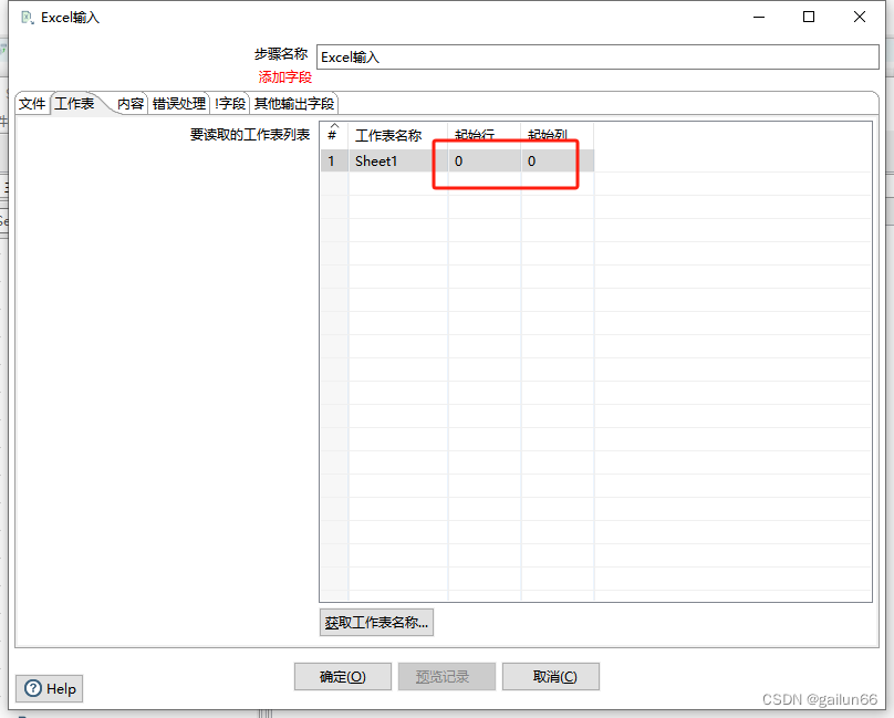 如果导入的Excel文件中的每个工作表的字段结构都相同,那么在【要读取的工作表列表】表中的第1行,不设置任何工作表名称(即【工作表名称】输入栏留空),只需设置第1行的【起始行】和【起始列】输入栏参数,这样的设置是读取所有的工作表,即第1行将用于所有工作表