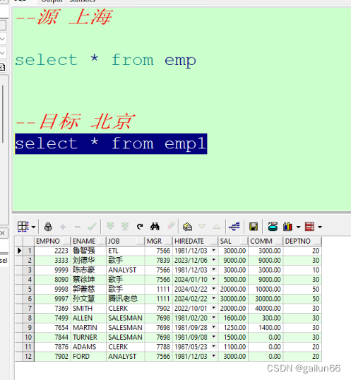 将工资大于等于5000的数据输出到emp1,其余数据输出到emp2