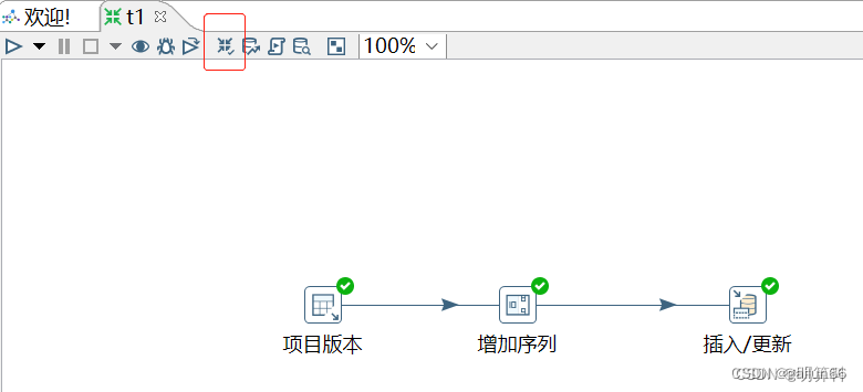 到这里,我们最简单的一个插入/更新数据的转换已经建立完成了,点击“校验这个转换”,Kettle会校验并给出简单的报告。