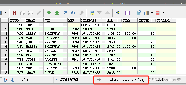 将源数据库中的HIREDATE从DATE类型转换为VARCHAR2类型