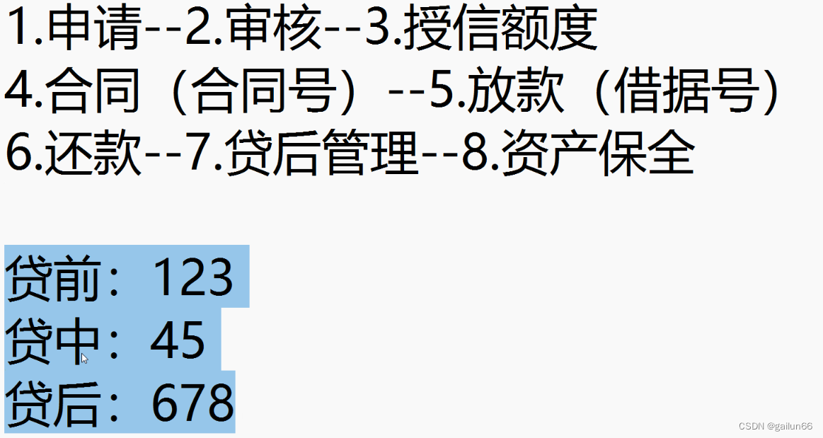 贷款五级形态:贷款五级分类制度是根据内在风险程度将商业贷款划分为正常、关注、次级、可疑、损失五类。贷款五级分类制是银行主要依据借款人的还款能力,即最终偿还贷款本金和利息的实际能力,确定贷款遭受损失的风险程度,其中后三类称为不良贷款。此前的贷款四级分类制度是将贷款划分为正常、逾期、呆滞、损失四类。