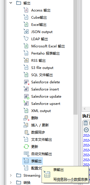 - 从“核心区域”中选择“输出”,拖入“插入/更新”