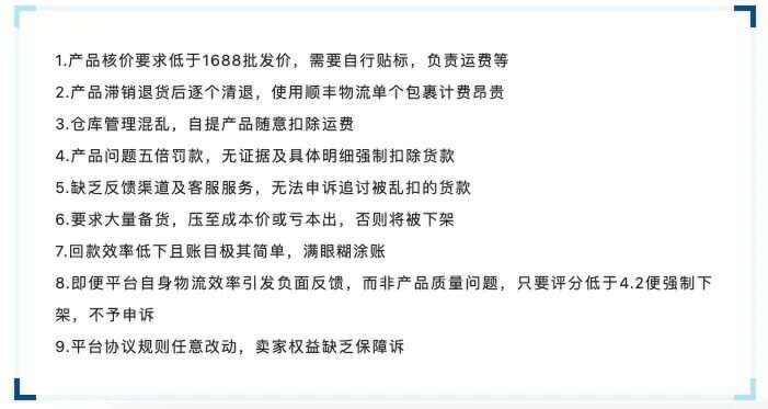 保护用户体验的同时,拼多多忽略了平衡商家的问题。在跨境电商圈,有卖家总结了Temu的“九大坑”。