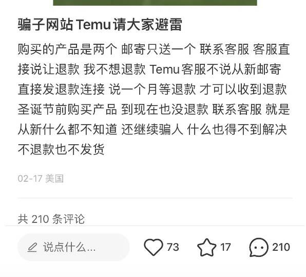 在社交媒体平台上,充斥着不少用户对Temu的吐槽和投诉。