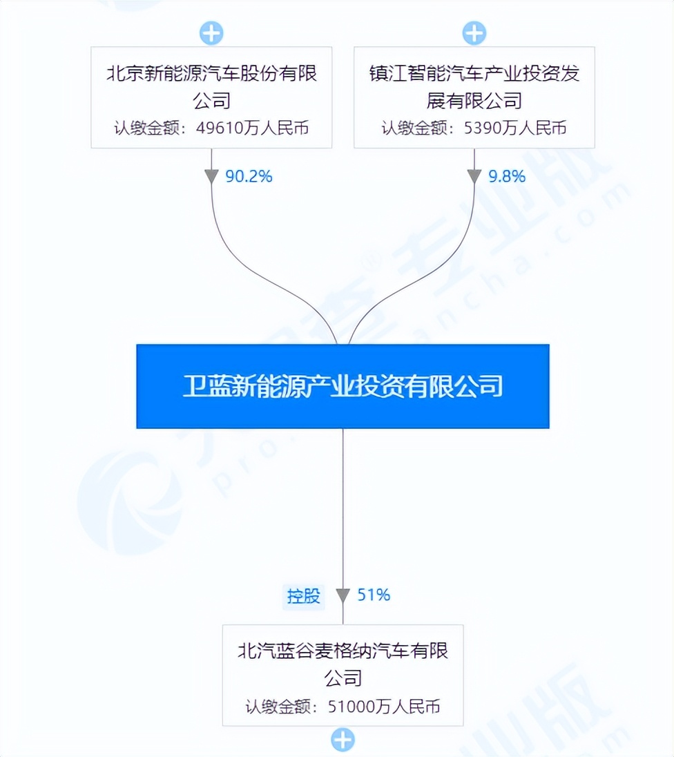 众所周知,北汽新能源已经跌倒在网约车上,于是有了北汽蓝谷新能源以及子公司北汽蓝谷麦格纳。据天眼查APP显示,北汽新能源通过卫蓝新能源间接控股北汽蓝谷麦格纳。