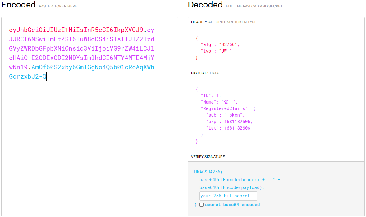 在写代码之前,我们把上面的token丢到上面网站中解析一下
