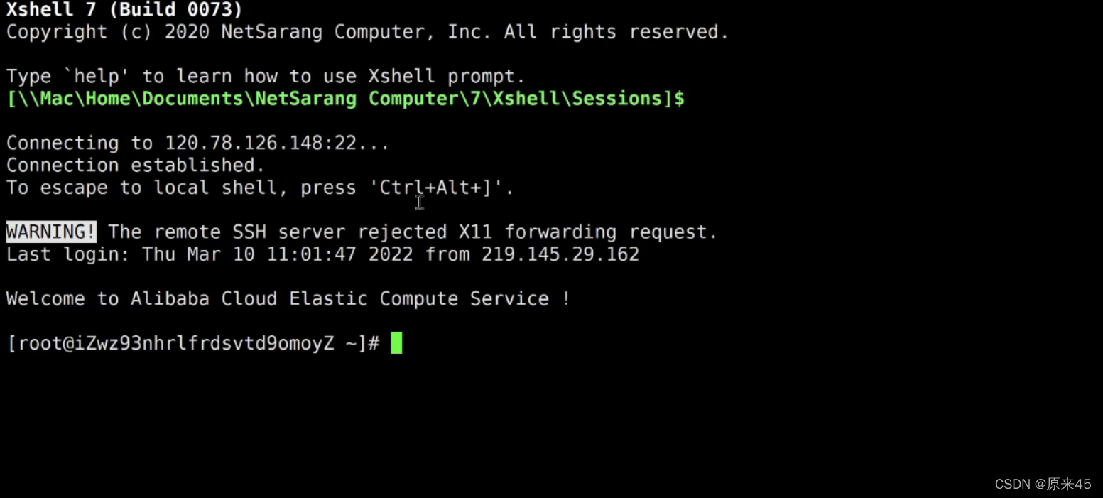 我们就有了我们的公用ip,root用户,以及我们的密码。
