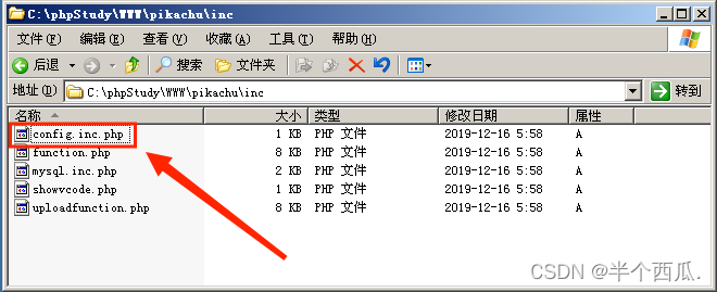 第四步:(1)打开 Pikachu 找到 inc,将其打开.