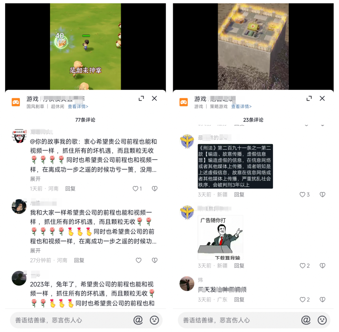 正因此,这类游戏广告评论区里,普遍充斥着玩家们的“祝福”之声。