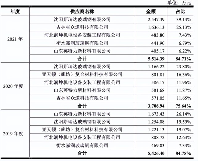 比如2019年排第三位,2020、2021两年蝉联供应量最高的沈阳斯瑞达玻璃钢有限公司,注册资本原仅100万,2020年12月变更为1000万。2021年12月31日,股东实缴了128万资金。