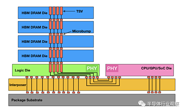 按照semiengineering在一篇报道中所说,通往 3D 的DRAM有两条道路,其中最直接的方法是保留当前的DRAM 技术并将多个芯片堆叠在彼此之上。这是用于高带宽存储器(HBM)的高级封装方法。常见的 HBM 芯片为 4 和 8 高,预计很快会达到 16 高。与基本 DRAM 相比,这是一种更昂贵的方法,因为在封装中堆叠die需要付出努力,但对于需要大量附近内存的应用程序(如人工智能),这是值得的。