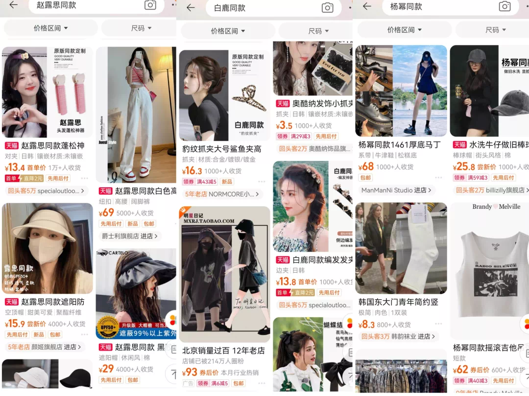 最直观的验证方式就是看销量。在淘宝搜索同款,赵露思、白鹿二人淘宝同款销量最高,出现月销量过万的单品和大批1000+月销产品,并不弱于传统概念里的带货女王杨幂。品牌合作方式的优先级为:代言+软植入>软植入>纯硬广代言。