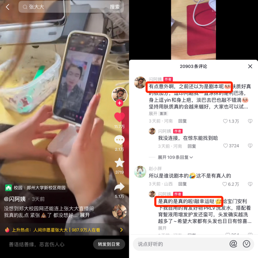 “要被张大大的直播间笑死过去,每个人都做到了能让他告死的程度。”